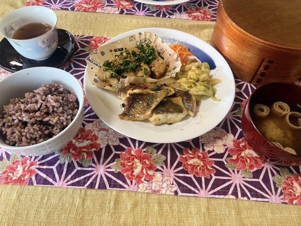 ご飯は玄米にもち麦と黒米を混ぜてふっくらもちもちに炊き上がっている。